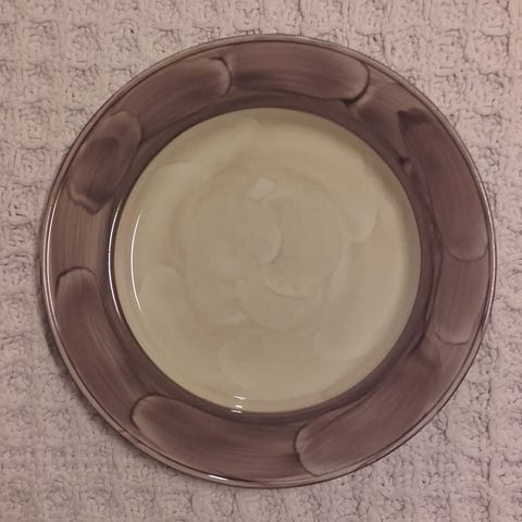 7kpl mustia syviä lautasia halkasija 20cm. Ei merkkiä joten ei tietoa mistä ostettu. Naarmuja on, mutta lasitus ehjä.