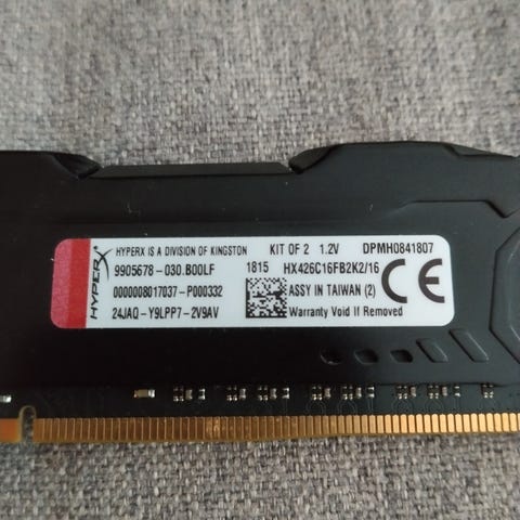 Kingston HyperX DDR3 RAM -muisti, 2x4GB kapasiteetti ja 1600MHz kellotaajuus.