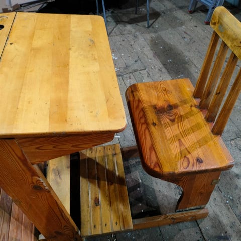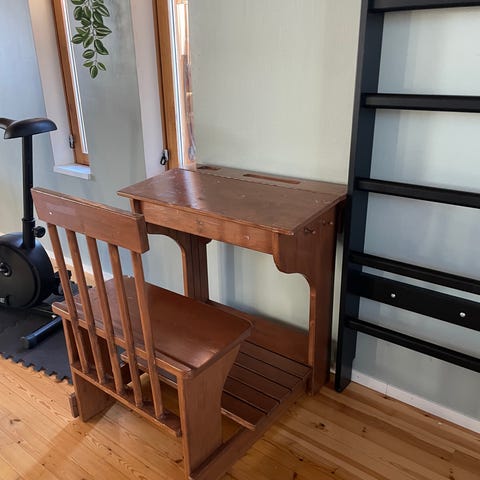 Kertaalleen maalattu vanha pulpetti. Kannessa käytön jälkeä, maalattavissa.