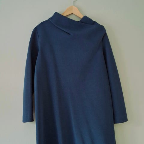 COS mekko / pitkä tunika, koko L. Mekko on valmistettu 100 % puuvillaisesta college-kankaasta ja väriltään syvän keltainen, jossa liukuvärjäyspainatus eli väri tummenee hieman helmaa ja hihojen suita kohden.