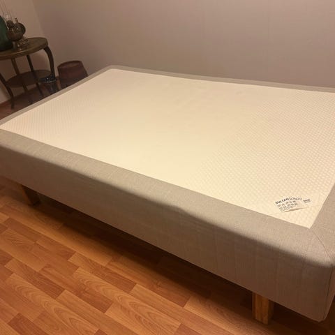 Hyväkuntoinen runkopatjasänky petauspatjalla.