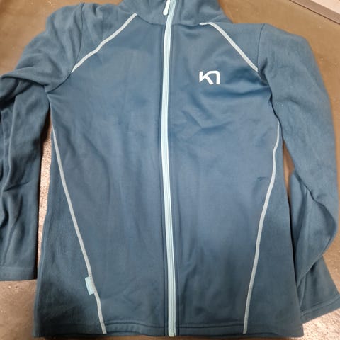 Fleecetakki vaaleansininen. Taskuissa vetoketjut. Koko L.