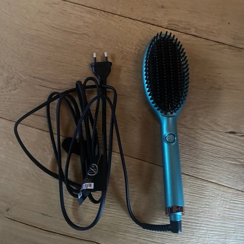 Vähän käytetty GHD:n suoristusharja. Lämpenee 185 asteeseen. Harjan avulla helppo ja nopea suoristaa hiukset.