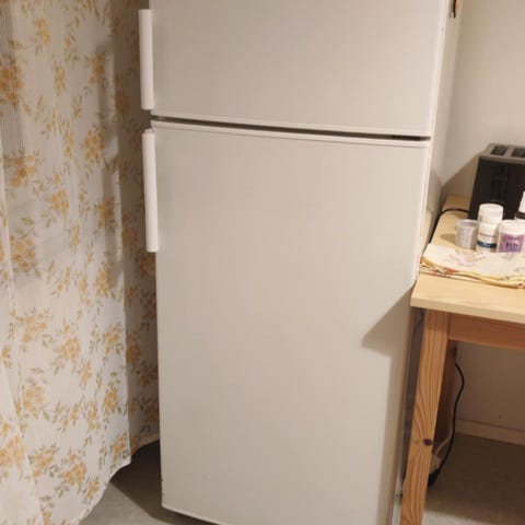 Jääkaappi, jossa on kolme hyllyä. Väri harmaa. Sopii kylmäsäilytykseen.