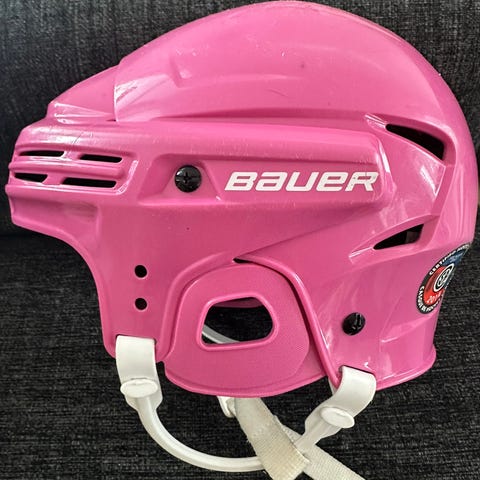 Bauer jääkiekkokypärä punaisena väriltään. Kypärä on suunniteltu muuhun luisteluun ja tarjoaa suojaa pään alueelle. Sisäpuoli on pehmustettu käyttömukavuutta varten ja siinä on säädettävä leukahihna. Ollut käytössä 4-10 vuotiaalla.