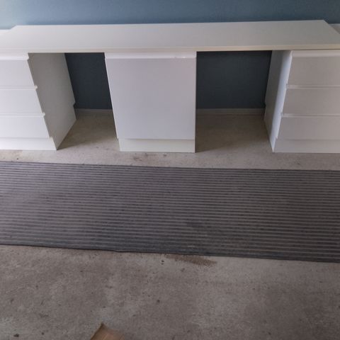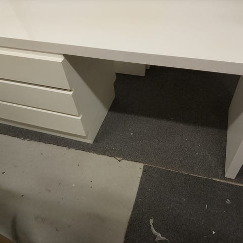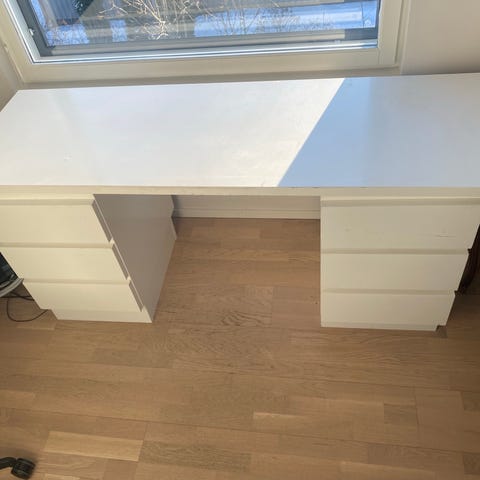 Myynnissä valkoinen Muurame kirjoituspöytä, jossa peili ja säilytyslokero. Vepsäläiseltä n. 10 vuotta sitten ostettu pöytä on yleisilmeeltään siistikuntoinen mutta toki elämää nähnyt. Osa laatikoiden sisäpuolista on hyväkuntoisia ja osassa kulumaa. Pakettiin kuuluu 2 x kolmonen laatikostot, sokkelit sekä pöytätaso jossa peili ja erillinen irroitettava säilytyslaatikko.