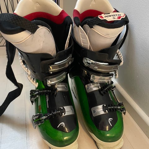 Jämäkät Fischerin laskettelumonot. Kelta/musta. Neljä solkea ja tarra. Koko 24,5 / 36/37.