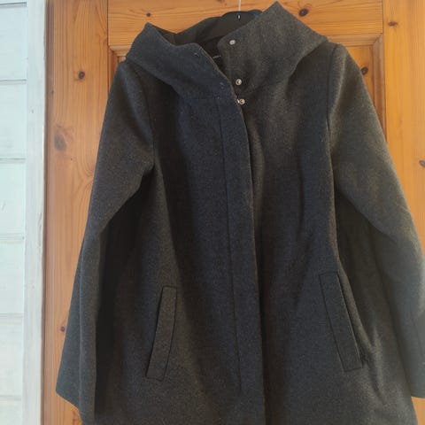 Uusi, käyttämättä jäänyt Vero Moda paksumpi harmaa villasekoitettakki koko M. Edessä vetoketju ja painonapit. Edessä taskut ja takissa on huppu. Takki on vuoritettu.