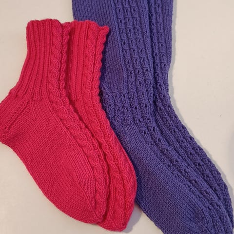 Sukat 80%villaa. Somisteena varressa ruusut ja latvialainen palmikko hieman kimaltavasta langasta.