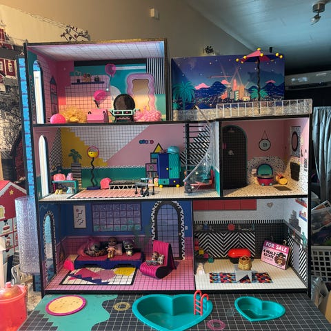 Myydään hyväkuntoisena l.o.l nukkekoti, jossa liukumäki. Sisältää esim. astioita, ruokia ja kodinkoneita keittiöön. Jokaisessa huoneessa käännettäviä osia esim kylpyamme/ lavuaari. Soveltuu kaikkin lol surprise nukkeihin. Mitat 122 cm korkeus, 122 cm leveys, syvyys 34 cm.