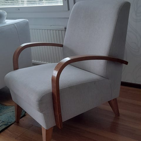 Asko NANNA-nojatuolit. Näitä on 2kpl 50e/kpl. Kunto oikein hyvä, kankaat ehjät