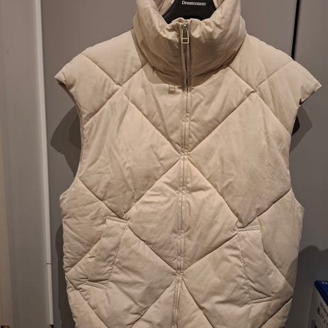 Myydään lämmin ja paksu beigenvärinen toppaliivi. Toppaliivin pituus on noin 63cm.