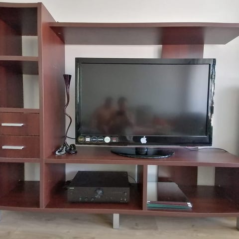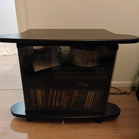 Pieni puinen kaappi kahdella laatikolla ja lasiovilla
