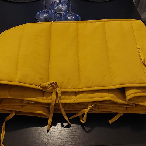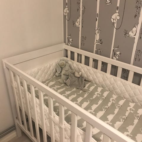 Myydään Ikean pinnasängyn pehmuste koossa 60x120cm. Pehmusteessa on tarrakiinnitykset ja valkoisella pohjalla pieniä harmaita tähtiä.