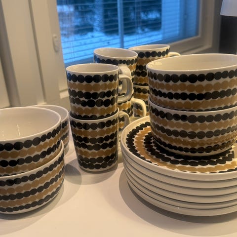 Myydään hyväkuntoiset ja ehjät räsymatto mukit. 2 kpl.