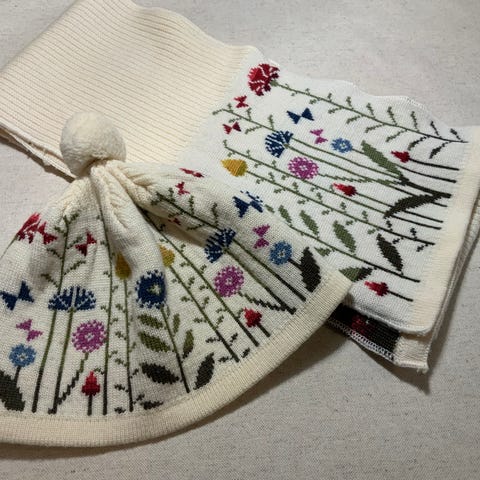 Käsinkudottuja merinovillaisia kaulaliinoja, drops extra fine lanka.