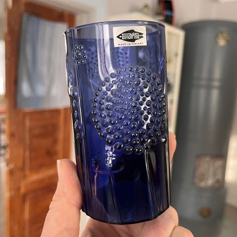 Oiva Toikan Nuutajärvelle suunnittelemat juomalasit. Ei mainittavaa kulumaa. Ei halkeamia tai lohkeamia. Parissa lasissa pohjassa yksittäinen pieni ilmakupla ( ehkä erottuu valokuvassa) Korkeus 12 cm halkaisija 6.5 cm. Myydään kaikki kerralla