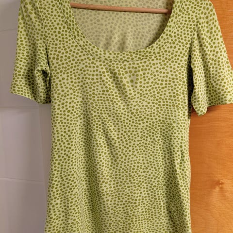Todella vähän käytetty. Kangas siis itsessään erinomaisessa kunnossa, mutta rintakehällä todella haalea tahra ja toisen hihansuun ompeleet osittain purkautuneet. Osaava varmasti korjaa. Mielestäni koko kallistuu enemmän XS.