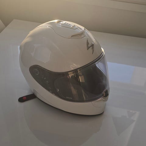 Kypärä ollut kohtuullisella käytöllä. Kerran tippunut josta särö tullut mutta ei kaaduttu. Mukaan boxi ja kirkas linssi. Koko M