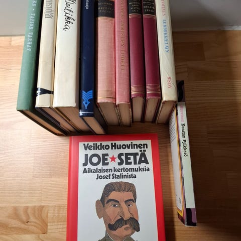 Veikko Huovinen kirjat sisältäen useita teoksia eri aiheista ja tyyleistä. Kirjat ovat suomenkielisiä ja useissa eri sidoksissa.