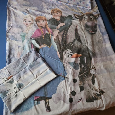 Myydään Frozen pussilakanasetti (120 x 100) sekä tyynyliina (40 x 33)