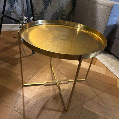 Skandinaaviseen tyyliin sopiva sohvapöytä mustaksi maalattua koivua. Sekä pöytäosa että jalat ovat puuta. Pöytä on helppo siirtää pois tieltä imuroinnin ajaksi sivuilla olevien kahvojen ansiosts. Pöydässä on jonkin verran pieniä käytön jälkiä, mutta yleisilme on siisti. Ostettu alun perin Iskusta.