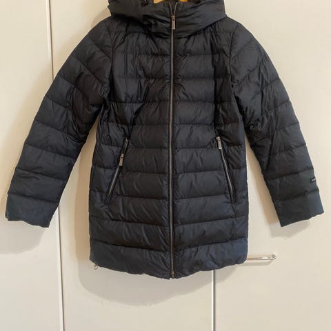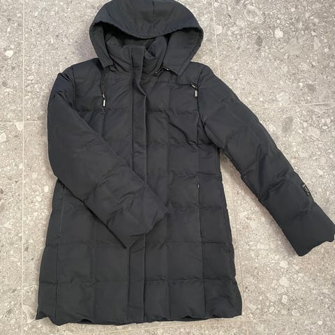 Uutta vastaava musta Joutsen Sylvia-kevytuntuvatakki. Koko S. Untuvatakissa on lämmin huppu ja vetoketju avautuu sekä ylhäältä että alhaalta. Sisäsaumasaa säilytyspussi, johon takin saa taiteltua pieneen tilaan. Toisessa taskussa mukana Joutsenen heijastin. Hihansuut mahdollista kääntää oikeaan mittaan.