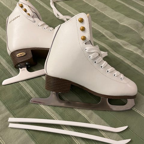 Susan lasten luistimet koko 35, valkoinen. Hyvä kunto, muutama jälki kts lisäkuvat. Muutamasti viime talvena käytetty
