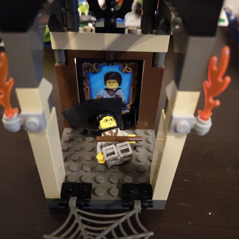 Pääasiassa hyllyllä ollut Lego Harry Potter setti.