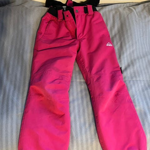 Mukavat vaaleanpunaiset McKinley lasketteluhousut kokoa 140. Vesipilariarvo 10000 eli kestää loskasäätkin.