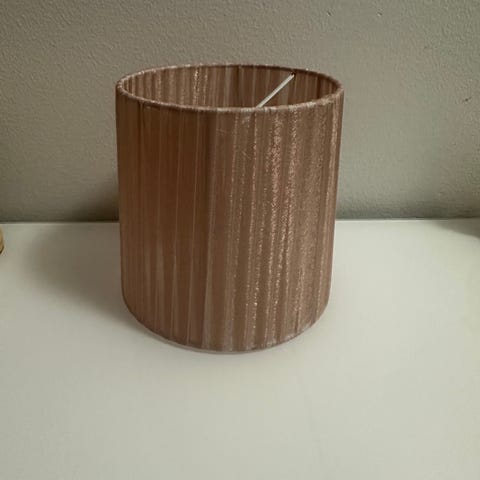Myydään siistikuntoinen valkoinen varjostin pöytävalaisimelle. Korkeus 15 cm ja alaosan levein kohta 14,5 cm.