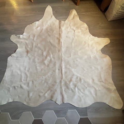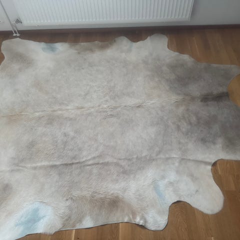 Hieno Brasilia lehmäntalja matto valko-beigenä. Tämä on ollut lattiallamme vähäisesti käytössä kunto on hyvä ( toki ei enää ihan uusi ole)