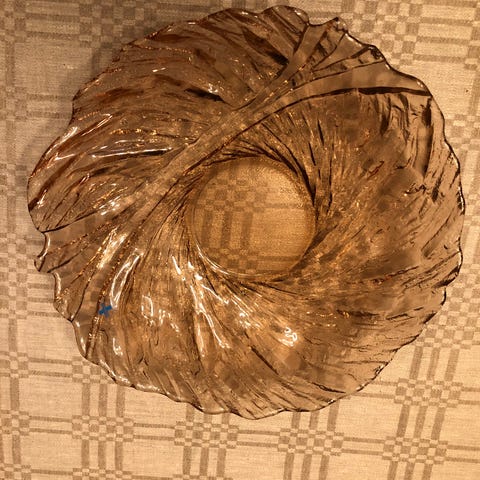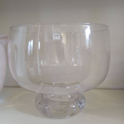 Liila lasimalja, korkeus noin 7,5cm, halkaisija noin 21cm.
