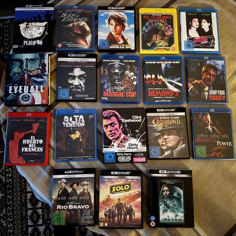 Suomi txt kaikissa. Osa muoveissa. Osa avattu ja katsottu kerran.