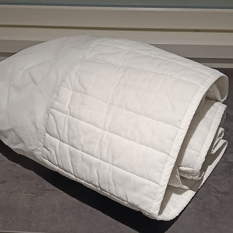 Pinnasängyn pehmuste. Merkki ikea. Väri tummankeltainen. Koko 60x120. Pehmusteen korkeus 29,5. Pohja kankaassa 4:ssä kohtaa reijät. Näkyy kuvassa. Reijät jää patjan alle piiloon. Kissatalous.