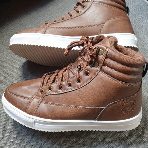 Tyylikkäät nahkalenkkarit, väri musta-harmaa-valkoinen. Koko 41.
