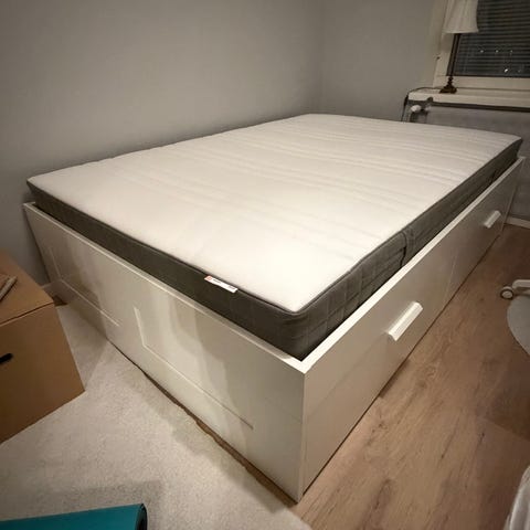 - IKEA Brimnes sänkyrunko. Sängyn runko sisältää säilytyslaatikot ja tukevat sälepohjat 2kpl. Rungossa näkyy normaalia käytön jälkeä ja pientä kulumaa.
