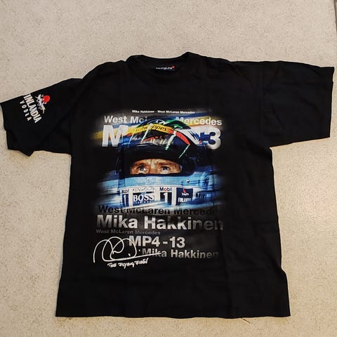 Vintage t-paita Mika Häkkinen World Champion 1998 Mobil 1 Koko L