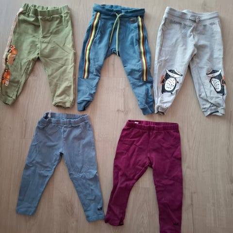 Kahdet hyväkuntoiset, vuorelliset housut. Housuissa taskut ja säädettävä vyötärönympärys. Mukavan pehmeä puuvillavuori.