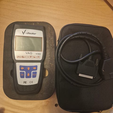 V-checker V302 VAG -vikakoodinlukija. Se on työkalu, jota käytetään auton sähköjärjestelmän diagnosointiin.