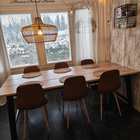Vekeltä pari vuotta sitten ostettu, sisätiloissa säilytetty täyspuinen ruokapöytä.