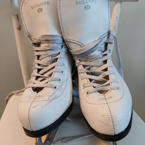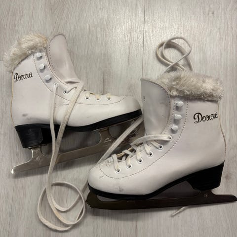 Lasten taitoluistimet, koko 33. Väri valkoinen. Mukaan teräsuojat.
