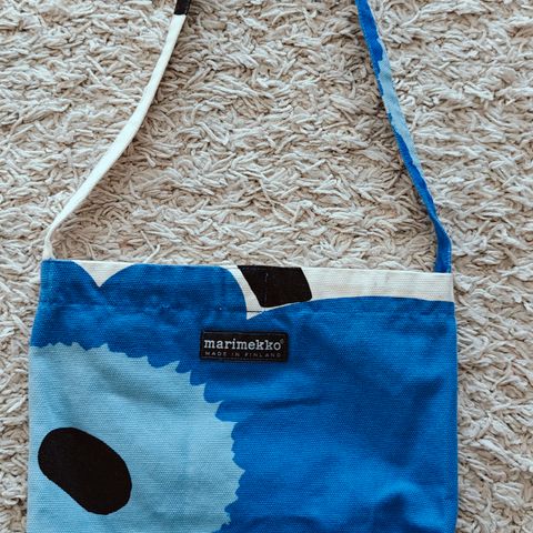 Unikkokankaasta ompelimossa teetätetty yliolan/vyölaukku. Säädettävä hihnan pituus.