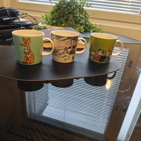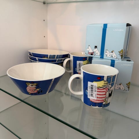 Todella siistissä kunnossa olevat muumi astiat. Kannu, purkki ja muki yhteishintaan