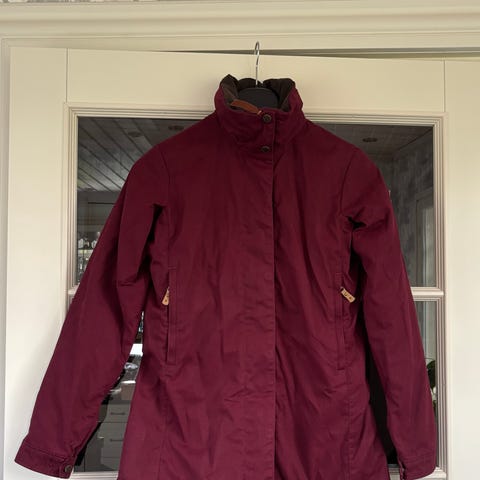 Naisten m-koko Fjälräven ulkoilutakki. Singi sarjaa ja väri terracotta. Kevyt vuori. Säädettävä huppu, vyötärö ja useita taskuja. G-1000 kalvo, ei lisättyä vahaa.