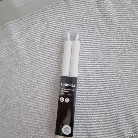 Joulukuun käytössä ollut 4 kruunukynttilän sarja ja kaukosäädin. Toimii hyvin myös ilman kaukosäädintä kääntämällä kynttilän alaosasta päälle. Sisältää käytössä olleet paristot. Toisessa kuvassa näkyy sarja käytössä.