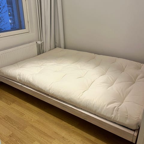 Erinomainen kunto ja puhdas. Käytetty patjansuojusta. Myydään ylimääräisenä, sillä taloudessa käytössä toinen vastaava futon. Nouda, kanna ja kuljeta mainio patja kotiisi Munkkivuoresta.