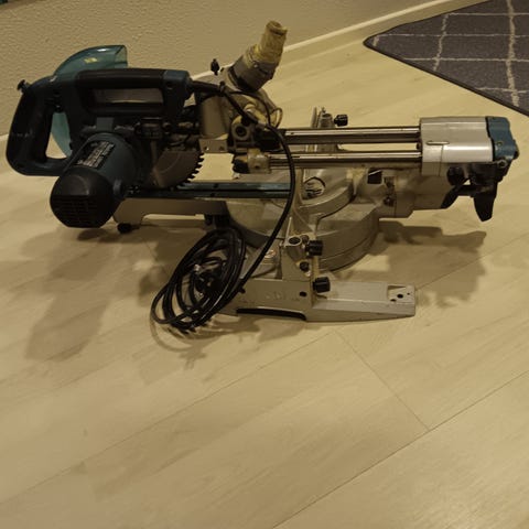 Yhdistelmäsaha + jalusta. Yhden talon listat sahattu. Kokonsa takia ainoastaan haku. Hinta yhteensä.