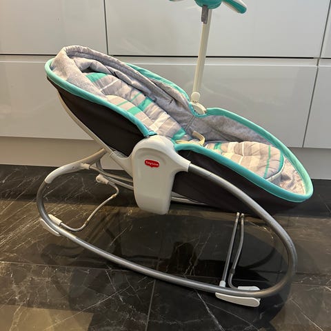 Mummolakäytössä ollut, muutaman kerran käytetty babysitteri. Mukavan leveä malli, istuin säädettävä, keinutoiminto tai ei, turvavaljaat. PUHDAS.