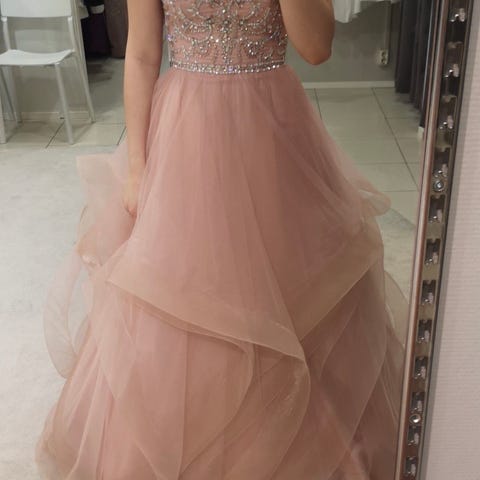 Käyttämättä jäänyt uutena ostettu vanhojentanssimekko. Vannehame mukana. Flower by Charm's merkkiä, ja mekossa koko XXXL. Kuitenkin sopiva harteikkammaalle n. 165cm käyttäjälle jolla normaalivaatteet L-kokoa.